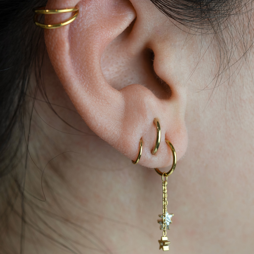 Drei Sterne, drei Kettchen, jede Menge Style. Dieser Anhänger mit drei Sternen aus Titan verleiht deinem Look eine sanfte Dynamik und einen Hauch Individualität. Drei Kettchen hängen an einer einzigen Öse, jeweils mit einem in Zackenfassung gefassten klaren Stein, der genau richtig mitschwingt.