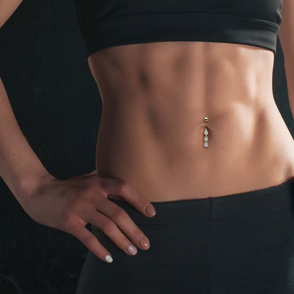 Bauchnabelpiercing aus 14 Karat Gold mit drei Steinen