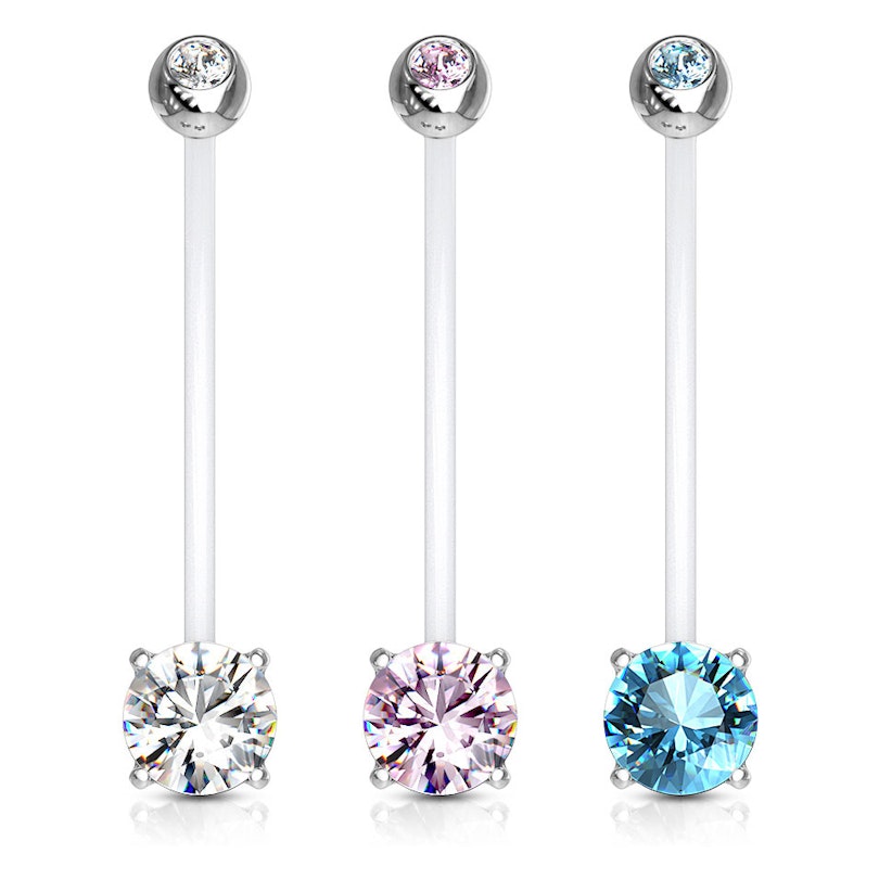 Bauchnabelpiercing für Schwangere mit zwei Steinen in mehreren Farben