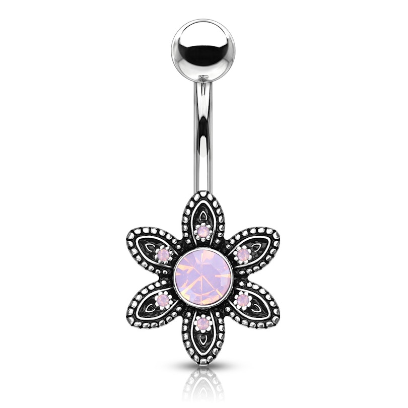 Name: Bauchnabelpiercing mit Blume und runden Opaliten