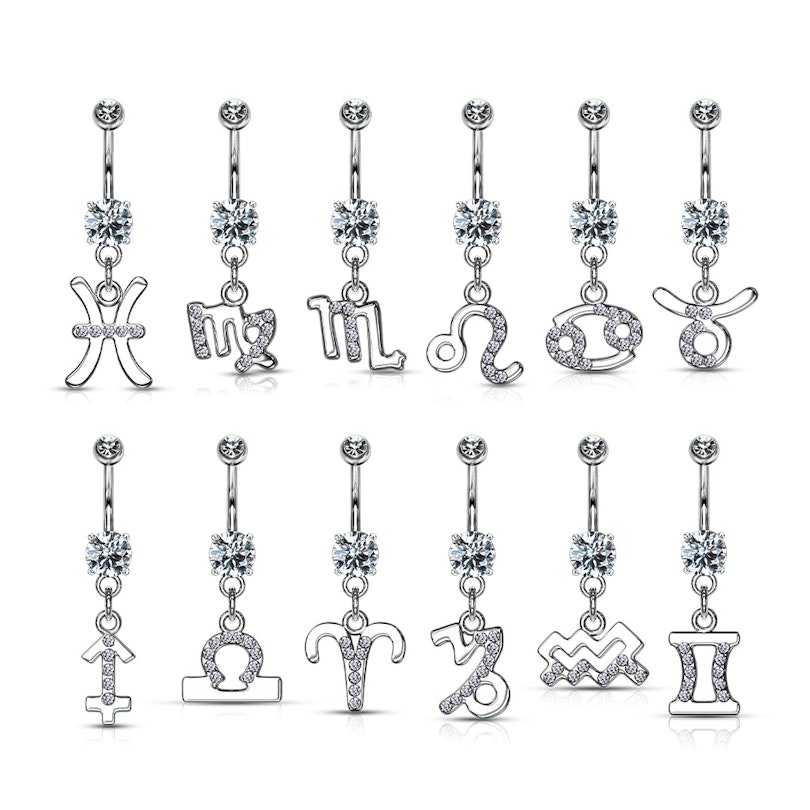 Hier kannst du dir ein schönes Bauchnabelpiercing mit deinem Sternzeichen im Anhänger auswählen. Du kannst auch ein Bauchnabelpiercing mit dem Sternzeichen deiner besten Freundin aussuchen und ihr damit ein besonderes Geschenk machen. Alle 12 Sternzeichen wurden mit schönen klaren Steinen versehen.