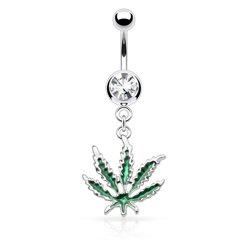 Name: Bauchnabelpiercing mit einem großen Hanfblatt