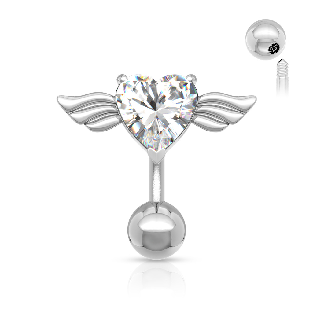 Hier bekommst du das schöne Motiv, was bereits aus der Tattoobranche weit bekannt ist, in einem Bauchnabelpiercing. Es ist das bekannte kleine Herz mit den Flügeln an den Seiten. Das Schmuckstück wurde aus Chirurgenstahl gefertig, was eines der beliebtesten Materialien in der Piercingbranche ist, weil es kein Nickel frei gibt. Das Herz besteht aus einem schönen facettengeschliffenen Stein, den du selbst aus drei schönen Farben wählen kannst.