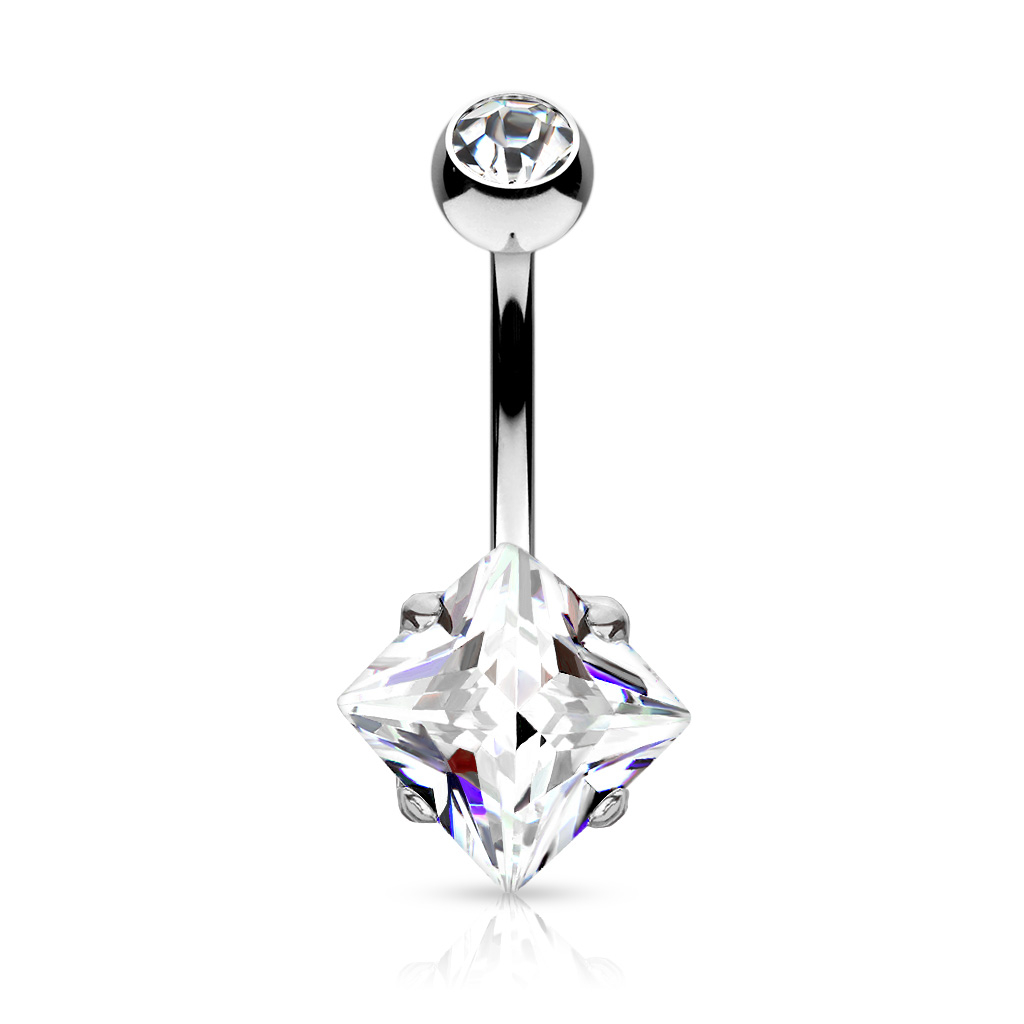 Name: Bauchnabelpiercing mit einem viereckigen Stein
