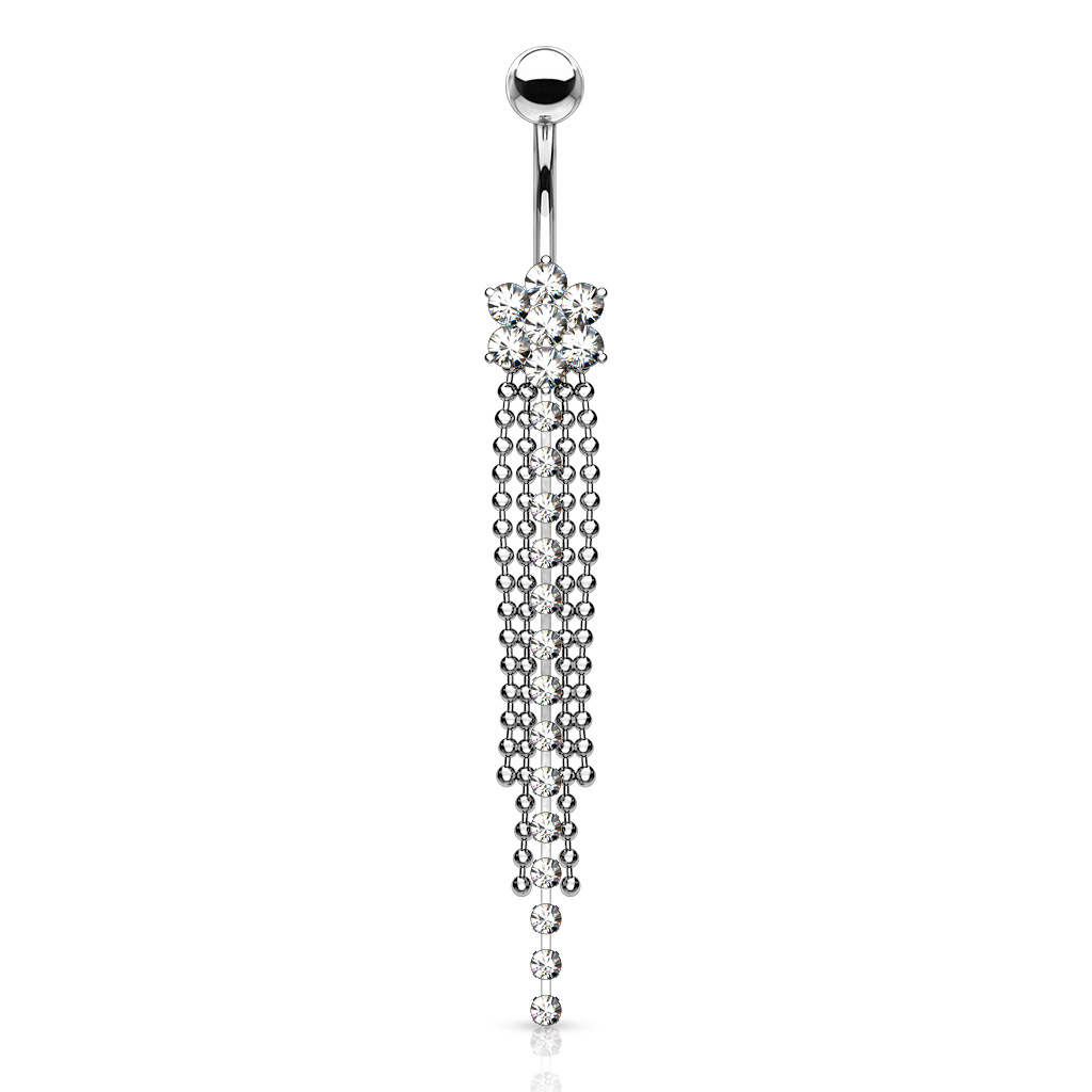 Mit diesem Schmuckstück bekommst auf jegliche Art einen unglaublich schönen und eleganten Nabel. Ohne daß es zu viel wirkt, wird dein Bauchnabel mit Steinen in der Bundkugel, die wie eine Blume geformt ist sowie in der mittleren Kette geziert. Die Blume besteht aus sieben seperaten Steinen, die durch ihre Fassung an ihrem Platz gehalten werden und zusammen eben die perfekte Blume bilden.