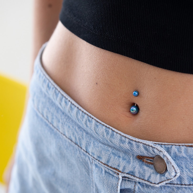 Bauchnabelpiercing mit metallischen Kugeln