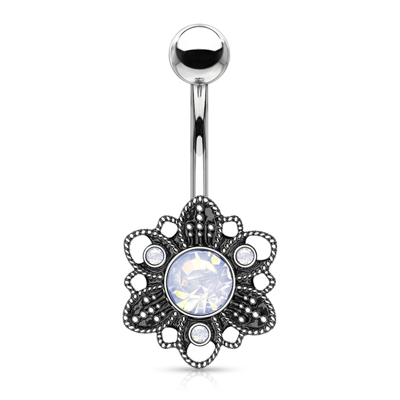 Name: Bauchnabelpiercing mit oxidierter Blume und Opalithen