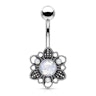 Bauchnabelpiercing mit oxidierter Blume und Opalithen