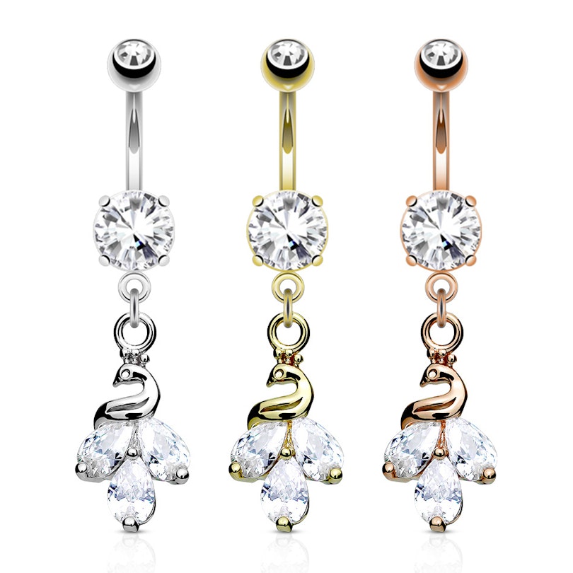 Name: Bauchnabelpiercing mit Pfau als Anhänger