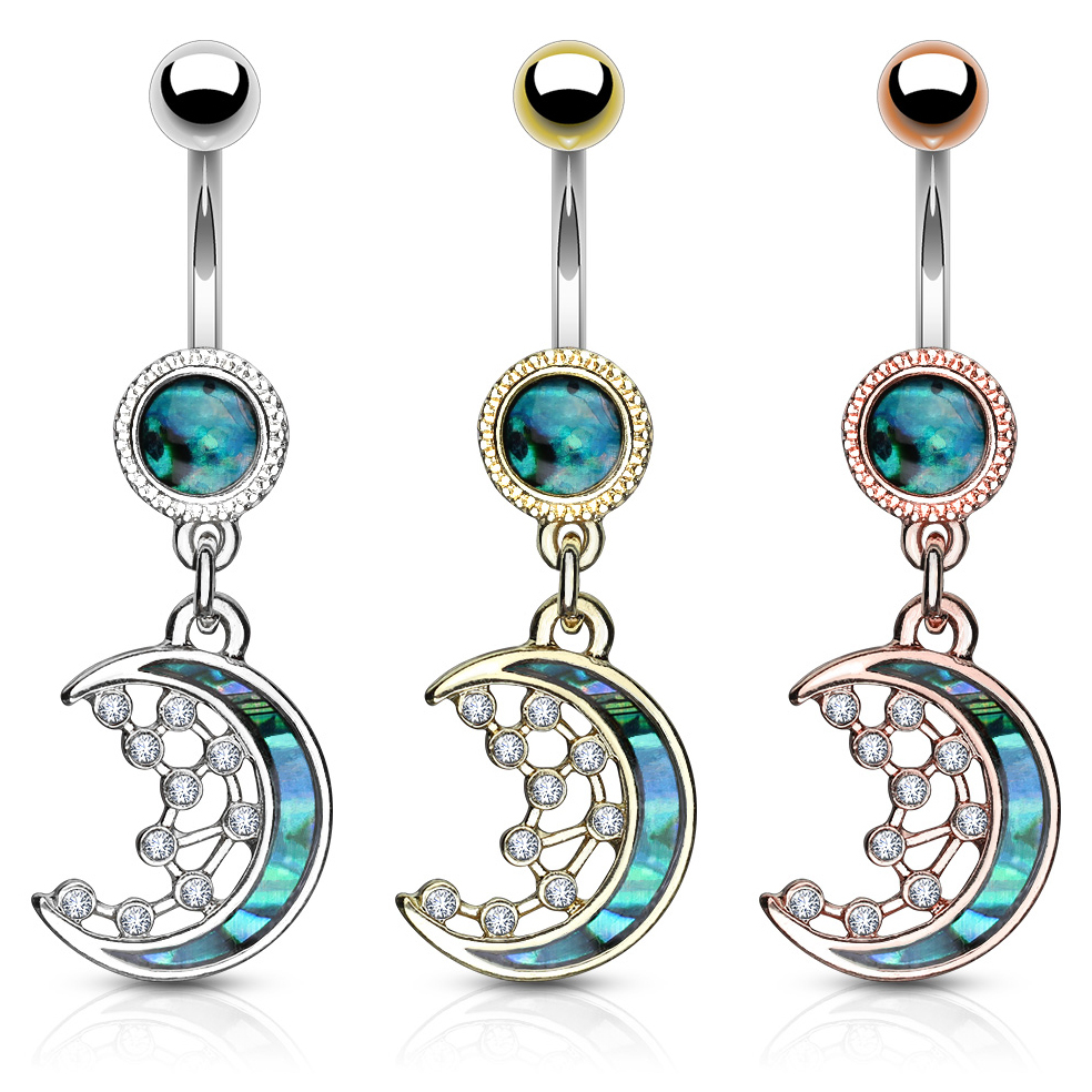 Bauchnabelpiercing mit Sichelmond und Sternen