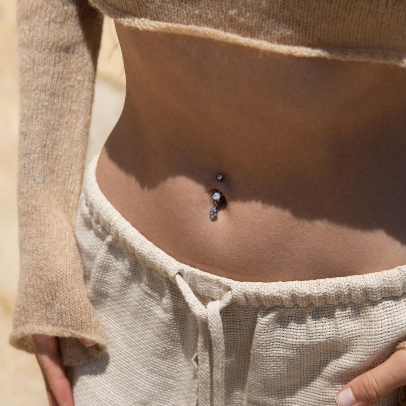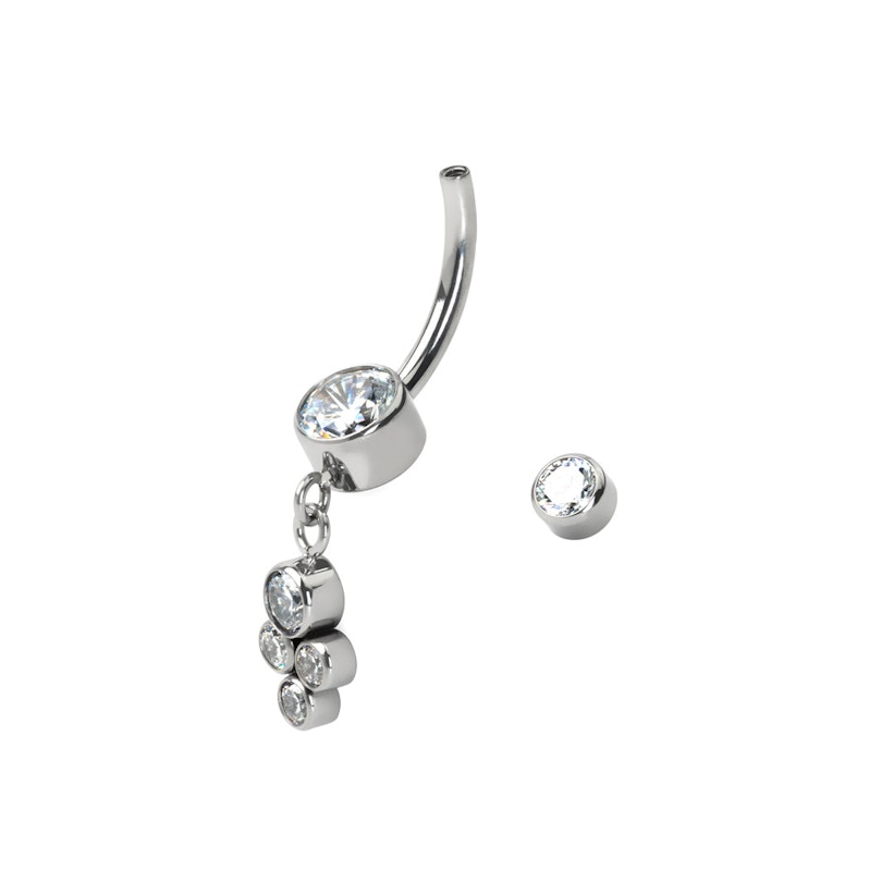 Bauchnabelring aus Titan mit hängenden Steinen in Lünettenfassung