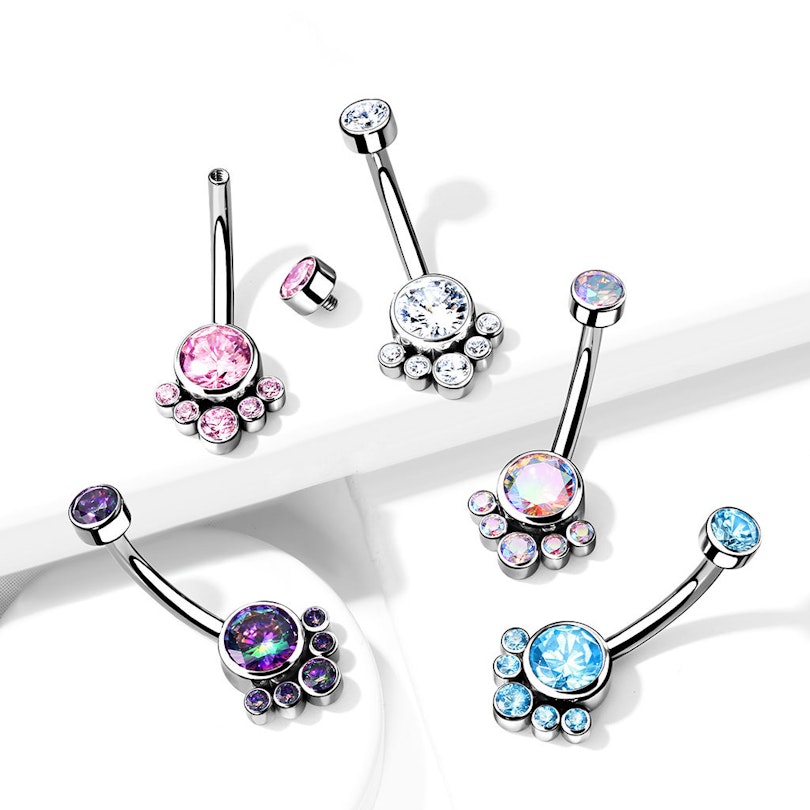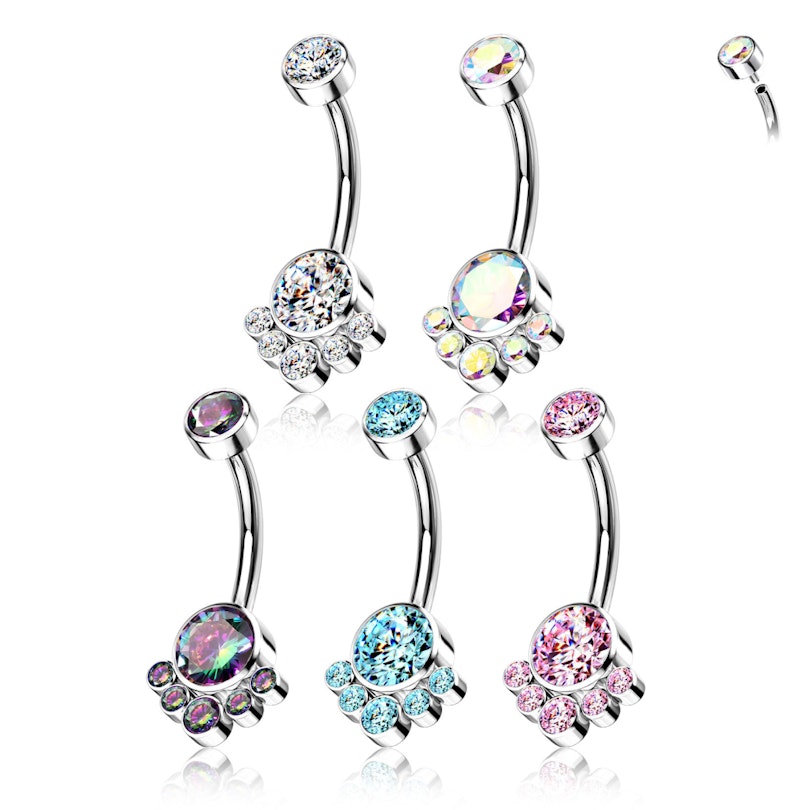 Bauchnabelring aus Titan mit runden Clustersteinen