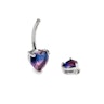 Dieser Bauchnabelstab hat zwei hübsche Herzen, die je nach Blickwinkel und Lichteinfall rosa oder lila schimmern. Ein kleines Herz (6 mm breit) befindet sich im oberen Teil und ein etwas größeres (7,5 mm breit) im unteren Teil.