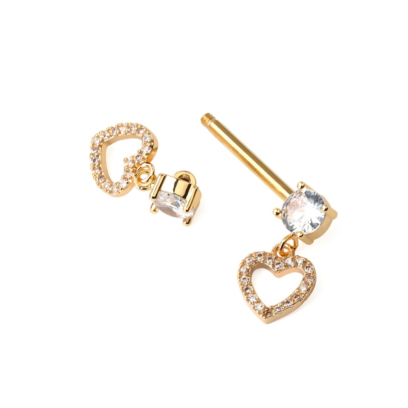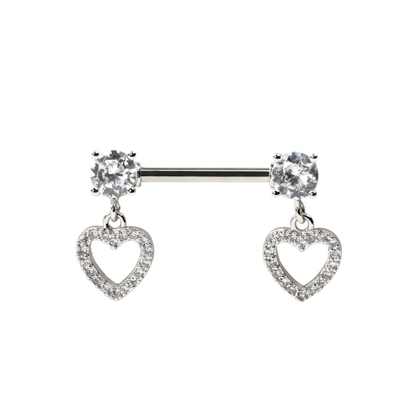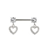 Dieses hübsche Brustwarzen-Barbell weist an jedem Ende einen CZ-Stein auf, an dem ein bezauberndes, mit winzigen CZ-Steinen besetztes Herz baumelt.