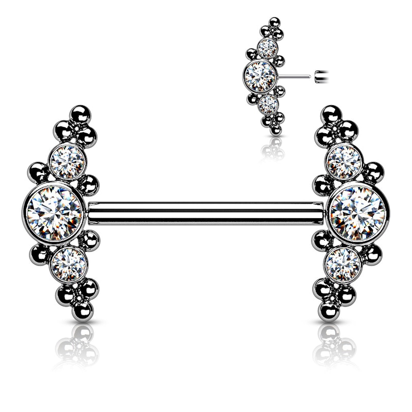 Brustwarzenpiercing aus Titan mit gewindelosen Cluster-Enden