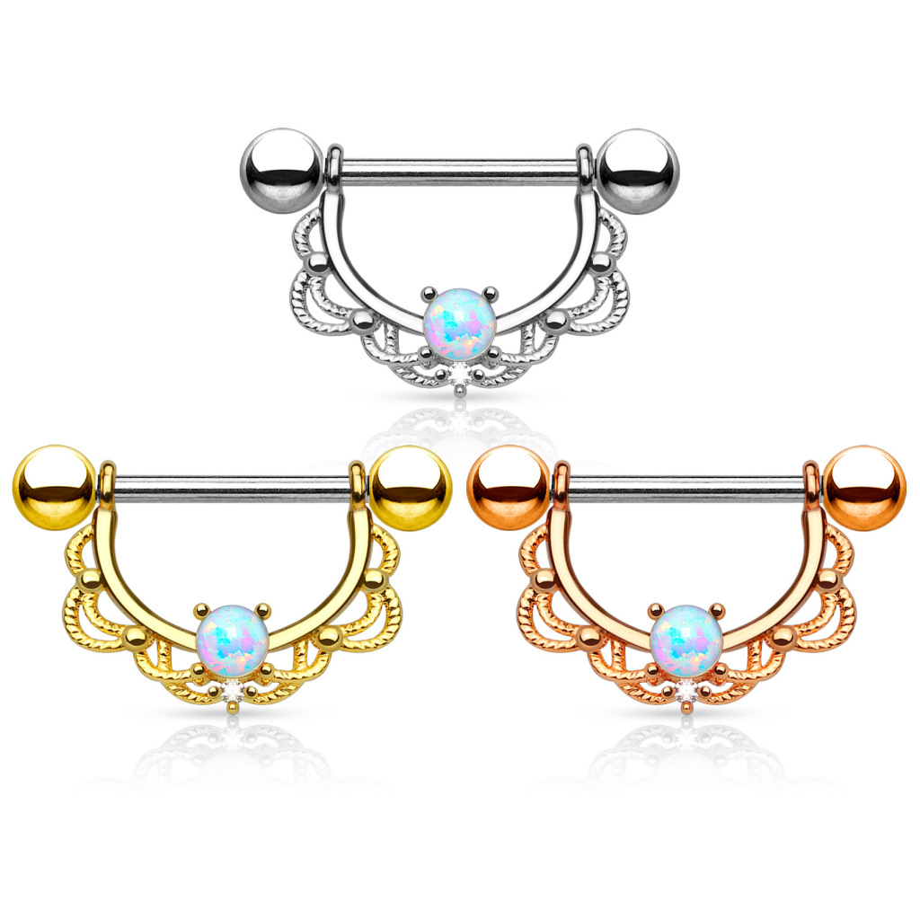 Brustwarzenpiercing mit Filigranmuster und Opalstein
