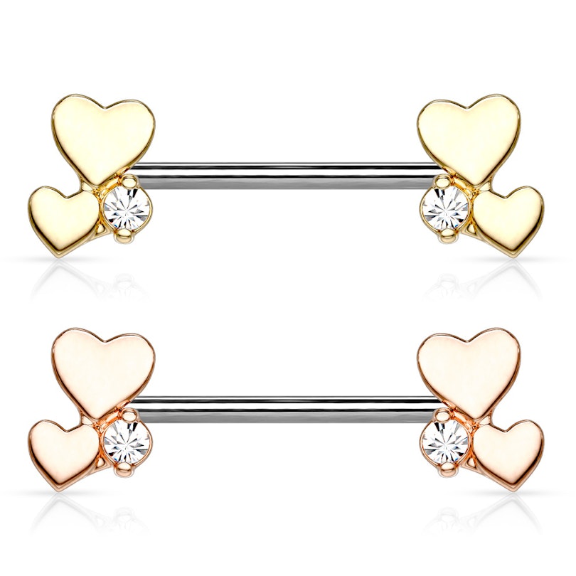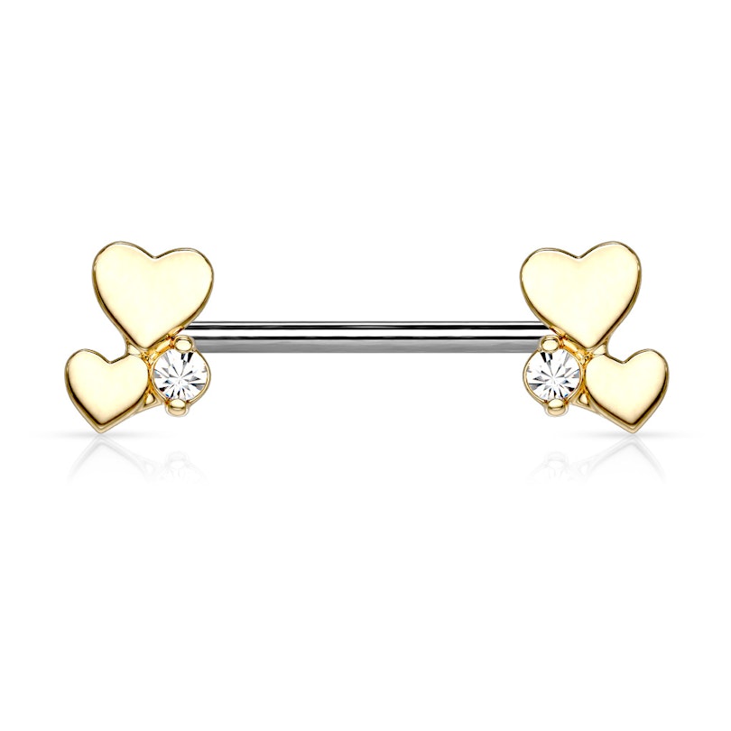 Brustwarzenpiercing mit Herzen und einem Stein an jedem Ende
