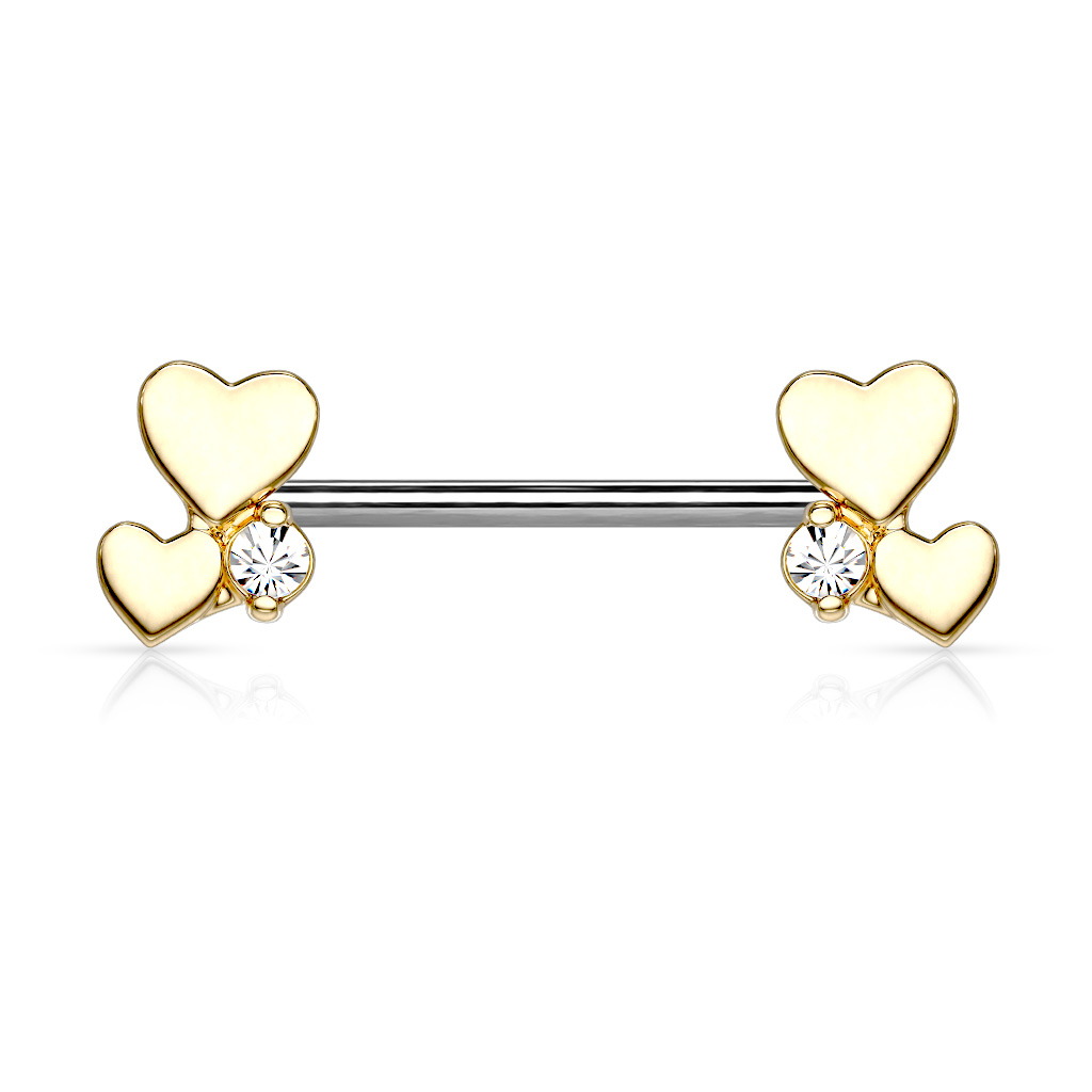Brustwarzenpiercing mit Herzen und einem Stein an jedem Ende