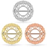 In der Mitte siehst du einen großen, sechszackigen Stern, der aber auch gleichzeitig wie ein Muster aus filigranen Herzen aussieht, die sich rund um diesen Stern winden. Aber die Vielseitigkeit des Designs endet nicht damit, denn die Herzen gleichen auch noch kleinen Rosenknospen, die sich wie ein ganzer Kranz Rosenknospen am äußeren Rand dieses Nippelschmucks verteilen. Der Schmuck ist sozusagen eine Evolution für sich, mit seinen vielen Motiven und Formen, die immer unterschiedlich aussehen. Wie eine kleine mikroskopische Weltgeschichte in einem Brustschild.