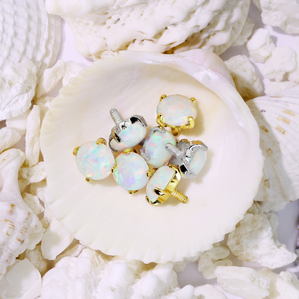 Hier ist das richtige Dermal Anchor Schmuckstück für qualitätsbewusste und wählerische Frauen, die keine Kompromisse beim Design oder Qualität eingehen wollen. Dieses Dermal ist schön und gleichzeitig schlicht in einem zeitlosen Design gehalten. Auf der Spitze sieht man einen einzelnen weißen Opalstein, der durch eine solide Einfassung aus Gold sicher am Platz gehalten wird.