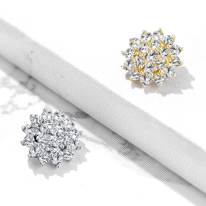 Hier siehst du ein Schmuckstück, welches auf jeden Fall Exklusivität in deinen Alltag bringen wird. Auf diesem als Blume geformtem Dermal sind sehr viele kleine klare Steine angebracht, die dem Dermal seinen Glanz geben. Die Steine werden durch winzige Halter festgehalten. Dadurch bleiben die Steine an Ort und Stelle.