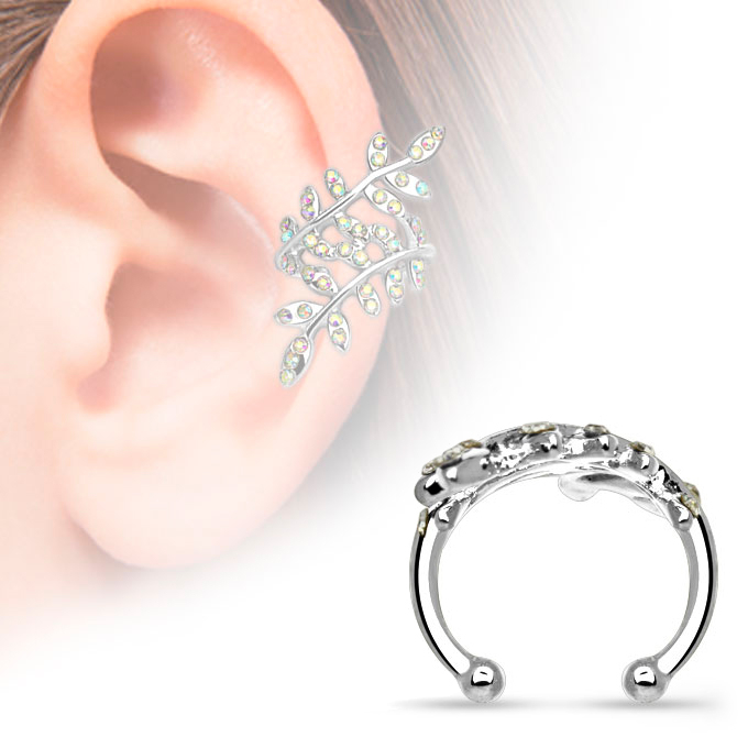 Earcuff mit steinbesetzten Blättern