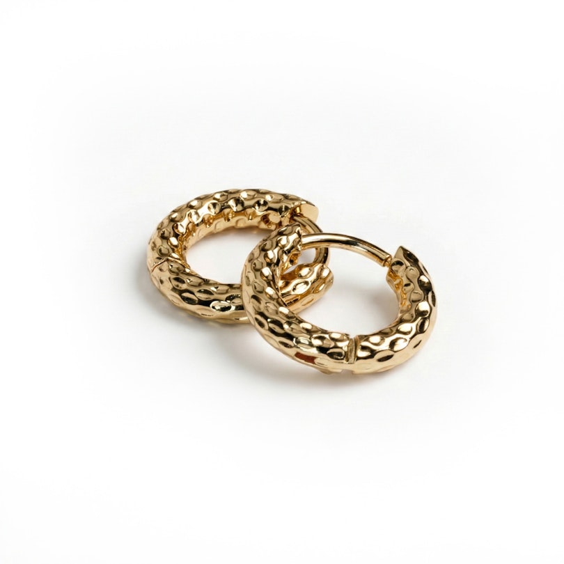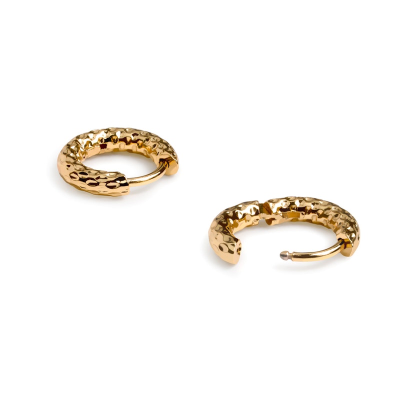 Lust auf ein Upgrade? Diese Ohrringe mit Hammerschlag-Effekt werden dein neues Lieblingsstück. Sie eignen sich optimal für deine Ohrläppchenpiercings und bilden die perfekte Basis, um deine Lieblingsstücke zu kombinieren. Und dank des Scharnierverschlusses sind sie einfach zu befestigen und super sicher. Müheloser Stil, garantiert.