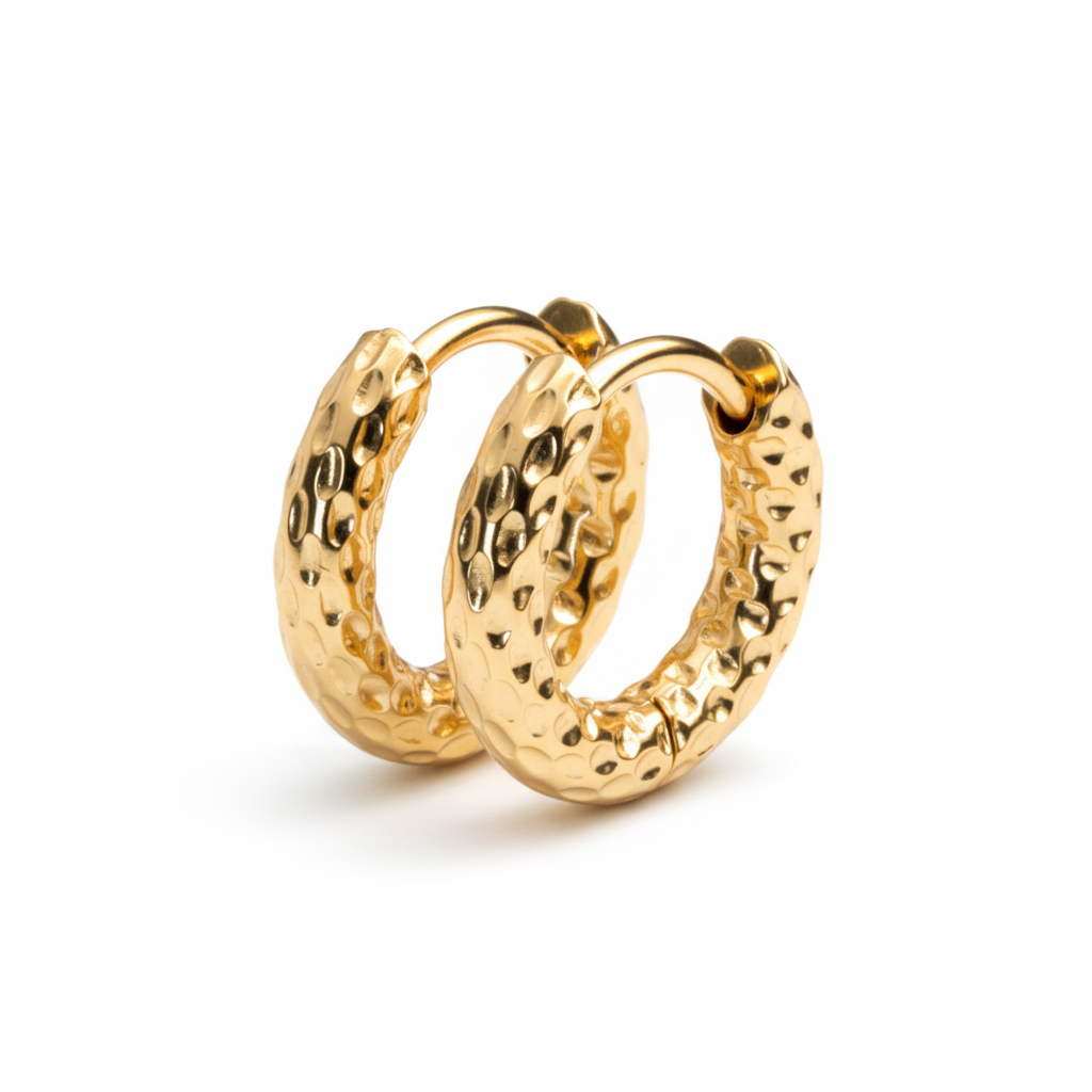 Lust auf ein Upgrade? Diese Ohrringe mit Hammerschlag-Effekt werden dein neues Lieblingsstück. Sie eignen sich optimal für deine Ohrläppchenpiercings und bilden die perfekte Basis, um deine Lieblingsstücke zu kombinieren. Und dank des Scharnierverschlusses sind sie einfach zu befestigen und super sicher. Müheloser Stil, garantiert.