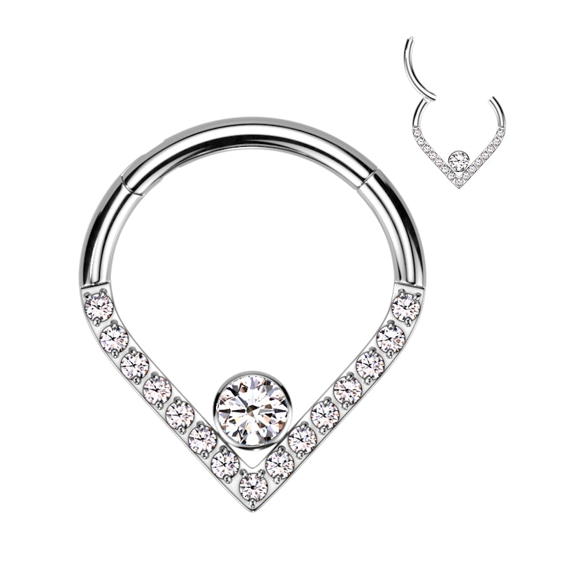 Eleganter Scharnierring aus Titan mit Steinen im Chevron-Design