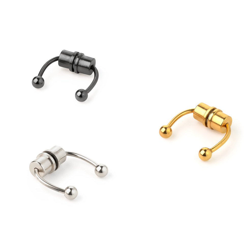 Es ist schwierig, fake Piercingschmuck herzustellen, denn normaler Piercingschmuck soll durch die Haut gehen. Aber es ist möglich, wenn das Schmuckstück komplett ist, oder anders gesagt - wenn es aus einem einzigen Stück besteht. In diesen Fällen kannst du nämlich eine Feder in den Schmuck einbauen, damit er sich an der Haut festhält, an der er normalerweise hängen würde. Bei diesem Hufeisen ist das nicht möglich, da es in zwei Teile geteilt ist. Dieses kleine Problem kann mit Magneten gelöst werden. Dank der Magnete macht sich dieses Schmuckstück am besten an den Körperstellen, an denen es teilweise versteckt wird, wie zum Beispiel an der Nasenscheidewand, wo die Hälfte des Schmuckstücks in der Nase versteckt wird. Wenn du es an anderen Stellen trägst, an denen das Piercingloch normalerweise sichtbar ist, sind die Magnete ebenfalls sichtbar und die Unechtheit deines Piercings wird offensichtlich.