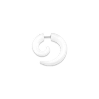 Dieser Spiraltaper sieht wirklich wie ein echter Dehner aus, wurde aber mit einem kleinen, dünnen Stab aus Chirurgenstahl versehen. Dieser kleine Stab gibt kein Nickel frei und wird direkt durch das bestehende Ohrloch geschoben. An beiden Enden sitzen dann die Spiralteile aus Acryl. Der Stab misst nur 6 mm in der Länge und 1,2 mm in der Dicke