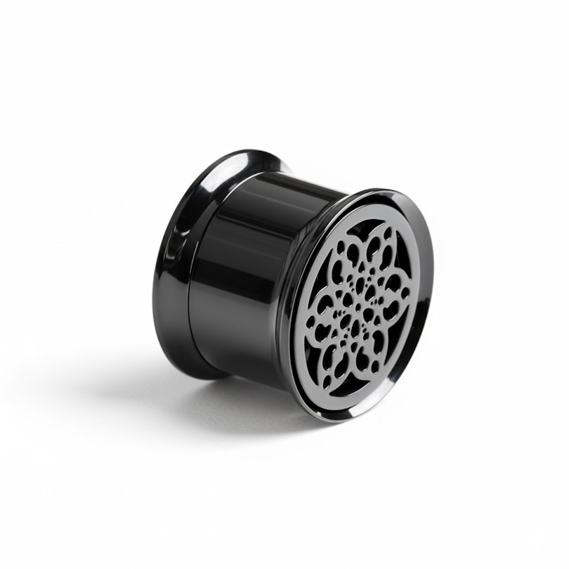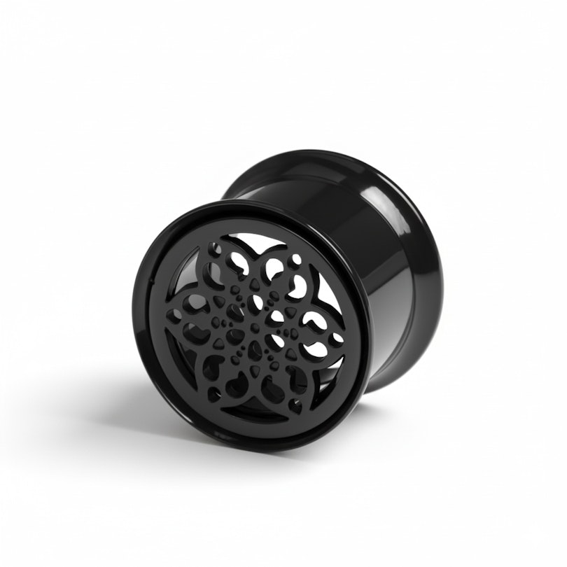 Der filigrane Tunnel mit Blume verleiht gedehnten Ohren eine elegante Note. Eine detailreiche Blumen-Ausschnitt ziert die Vorderseite und verbindet markantes Design mit subtiler Handwerkskunst für einen Look, der klassisch und cool zugleich ist.