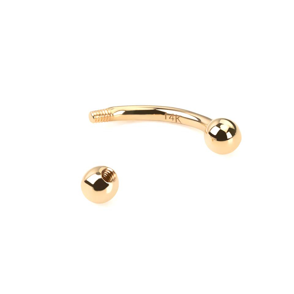 Eleganter Luxustab im bekannten gebogenen Design, diesmal hergestellt aus echtem 14 karätigen Gold. Das Design ist genauso simpel und vielseitig anwendbar wie alle anderen gebogenen Stäbe, so daß du dich nur für die richtige Stärke, Länge und Kugelgröße entscheiden musst.