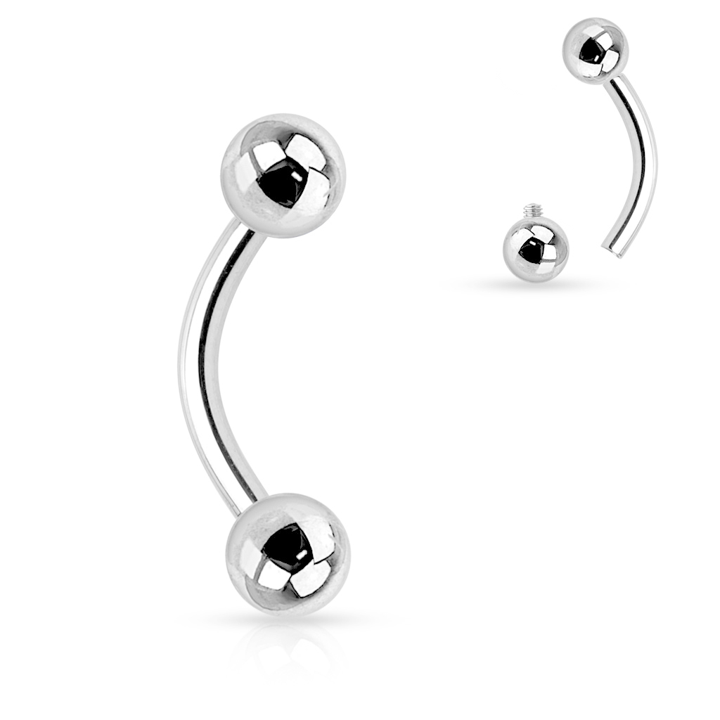 Ein gebogener Stab ist ein vielseitig anwendbarer Schmuck und kann in vielen verschiedenen Piercings verwendet werden. Das einzige, was für die Anwendung eines gebogenen Stabes erforderlich ist, ist, dass die Abmessungen des Stabes mit den Maßen deines Piercings übereinstimmen. Hast du z.B. ein vertikales Labret-Piercing mit den Maßen von 10 mm in der Länge und 1,2 mm in der Dicke, dann sollte der Stab die gleichen Abmessungen haben. Die Kugelgröße ist eine reine Geschmackssache, möchtest du also 3 mm Kugeln haben, dann wähle diese Größe aus und möchtest du 4 mm Kugeln, dann eben diese Größe.