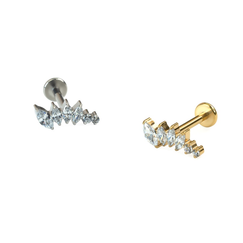 Gebogenes Titan-Labret mit Steinen in abnehmender Größe