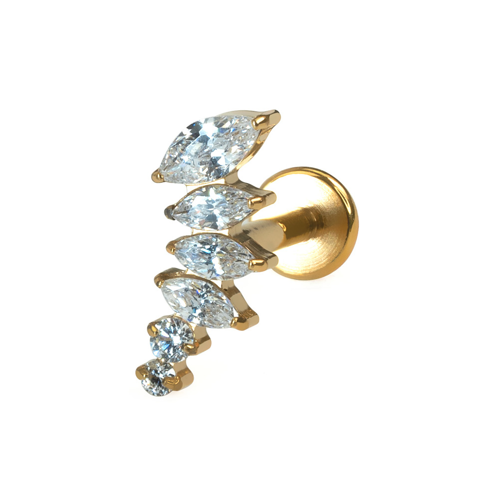 Gebogenes Titan-Labret mit Steinen in abnehmender Größe