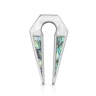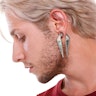 Ein Hänger ist, wie der Name schon sagt, etwas Hängendes. Ein Hänger ist auch dadurch gekennzeichnet, dass er nicht in sehr vielen Größen erhältlich ist, da nicht der Teil, der durch das Ohr geht, die Dekoration ist (wie bei einem normalen Plug oder Tunnel), sondern derjenige, der hängt. Daher kann dieser Schmuck verwendet werden, wenn du ein Stretch von mindestens 10 mm besitzt. Je größer dein Stretch, desto mehr wird er hängen. Selbst mit einem Stretch von 20 mm wird dieser Schmuck aufgrund seines Designs nicht herausfallen. Hier handelt es sich um einen Schlüsselloch-Hänger, bei dem der Schnitt in der Mitte des Schmucks die gleiche Form hat wie ein Schlüsselloch. Auf jeder Seite des Schlüssellochs befindet sich eine Abalone Design. Das Gleiche gilt für die Rückseite des Schmucks, somit kannst du ihn sowohl im rechten, als auch im linken Ohr verwenden. Bei Abalone handelt es sich um ein organisches Material, somit gleicht keine Abalone der anderen.