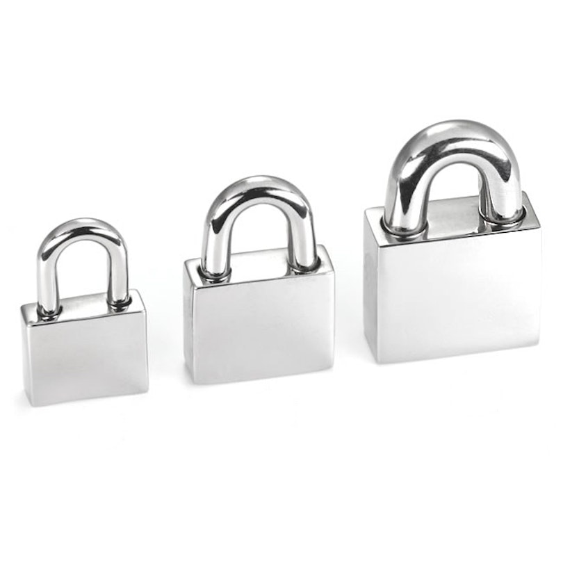 Hängeschloss aus reinem, rostfreien Stahl (316L ASTM F-138) in fünf verschiedenen Größen. Wähle zwischen 3, 4, 5, 6 oder 8 mm Stabstärke, je nachdem was zu deinem Piercing und der Platzierung deines Piercings passt. Das Hängeschloss ist ein multifunktionales Schmuckstück, da es an verschiedenen Stellen und in verschiedenen Piercings getragen werden kann, solange die Maße dazu passen. Hänge es doch z.B. in dein Ohr, die Brust oder trage es als Intimpiercing.