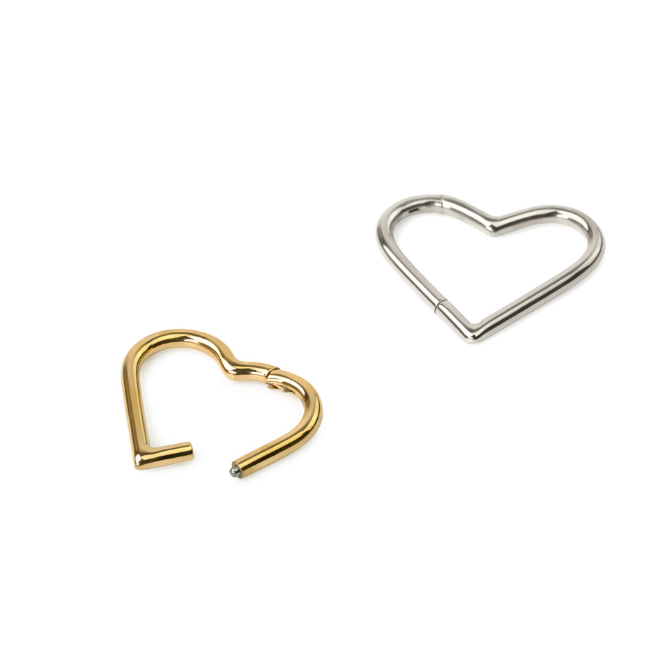 Dieser Scharnierring weist eine unserer Lieblingsformen auf: das Herz. Wer einen Piercingring sucht, der sowohl elegant ist als auch eine süße Note vermittelt, ist hier genau richtig.