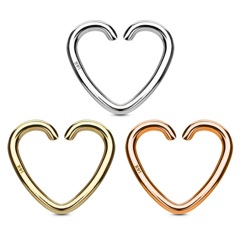 Herzförmiges Ohrpiercing aus 14 Karat Gold