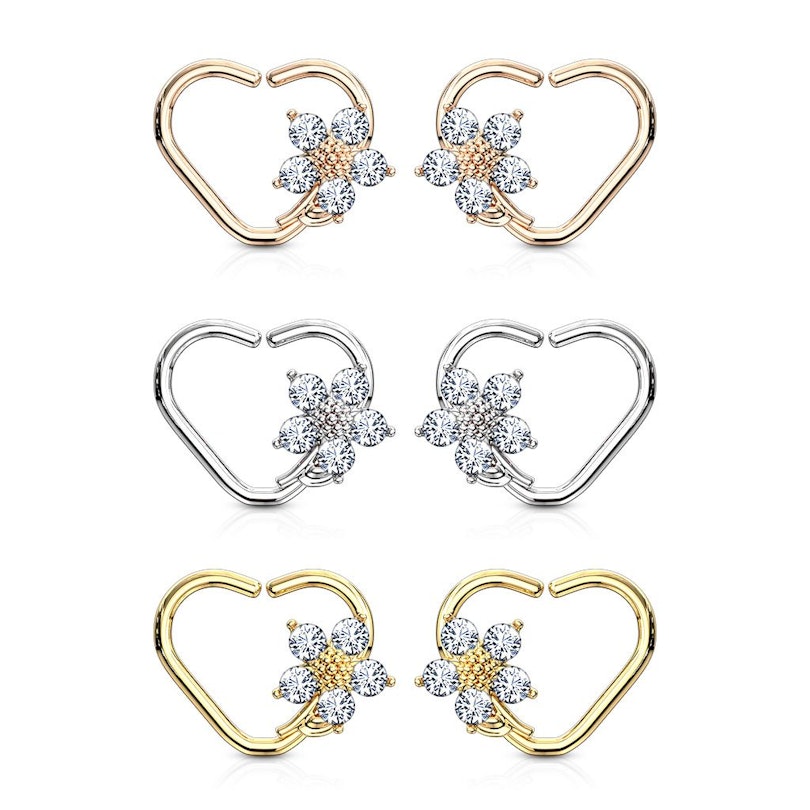 Herzförmiges Ohrpiercing mit Blume aus Steinen