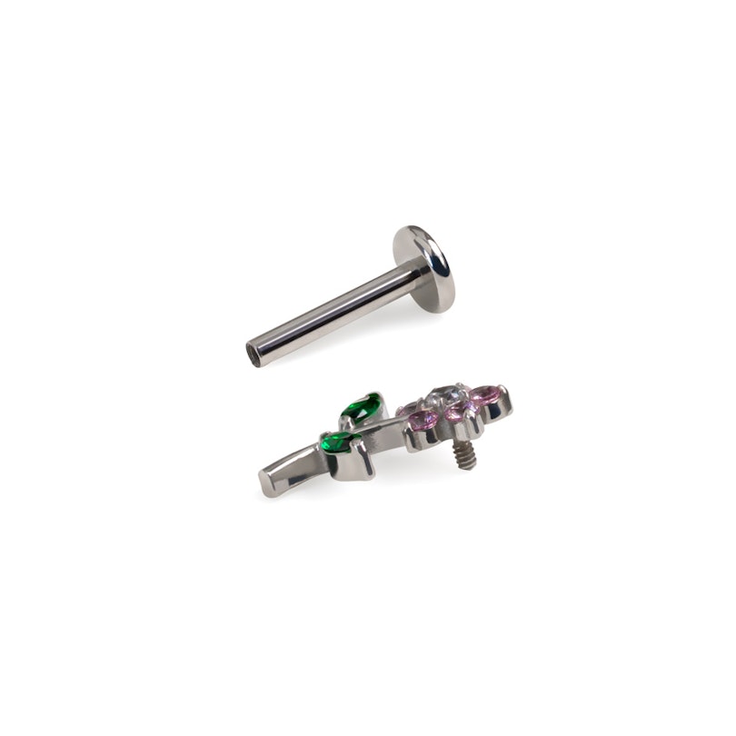 Das Innengewinde sorgt für ein reizfreies und sicheres Einsetzen, damit du ihn nicht im Laufe des Tages verlierst. Dieses Labret ist in goldener oder silberner Farbe erhältlich und eignet sich für Conch-, Helix- oder Ohrläppchen-Piercings. Ein zarter Blütenmoment, der sich überall einfügt.