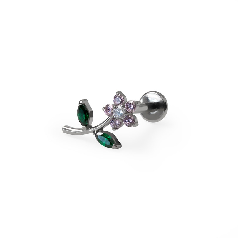 Das hübsche Labret mit Blume und flacher Rückseite verleiht deinen Ohren eine frische Note. Die in Zacken gefasste Blüte mit grünen Blättern vereint verspielte Details mit Alltagstauglichkeit. Aus 316L Chirurgenstahl gefertigt, ist es langlebig, wasserfest und für die meisten Hauttypen geeignet.