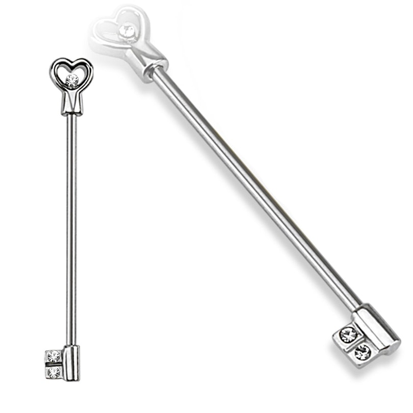 Schlank, blank und elegant ist dieser Industrialstab für dein Ohr. Das Design ist wirklich sehr süß und feminin, denn der Industrialstab ist wie ein Schlüssel mit einem Herzgriff geformt. An diesem Griff sitzt ein kleiner, funkelnder Stein und ebenso im Schlüsselteil finden sich zwei schöne Steine in derselben Farbe. Du kannst zwischen Klar, Rosa und Türkis auswählen, ganz nach deinem eigenen Geschmack.