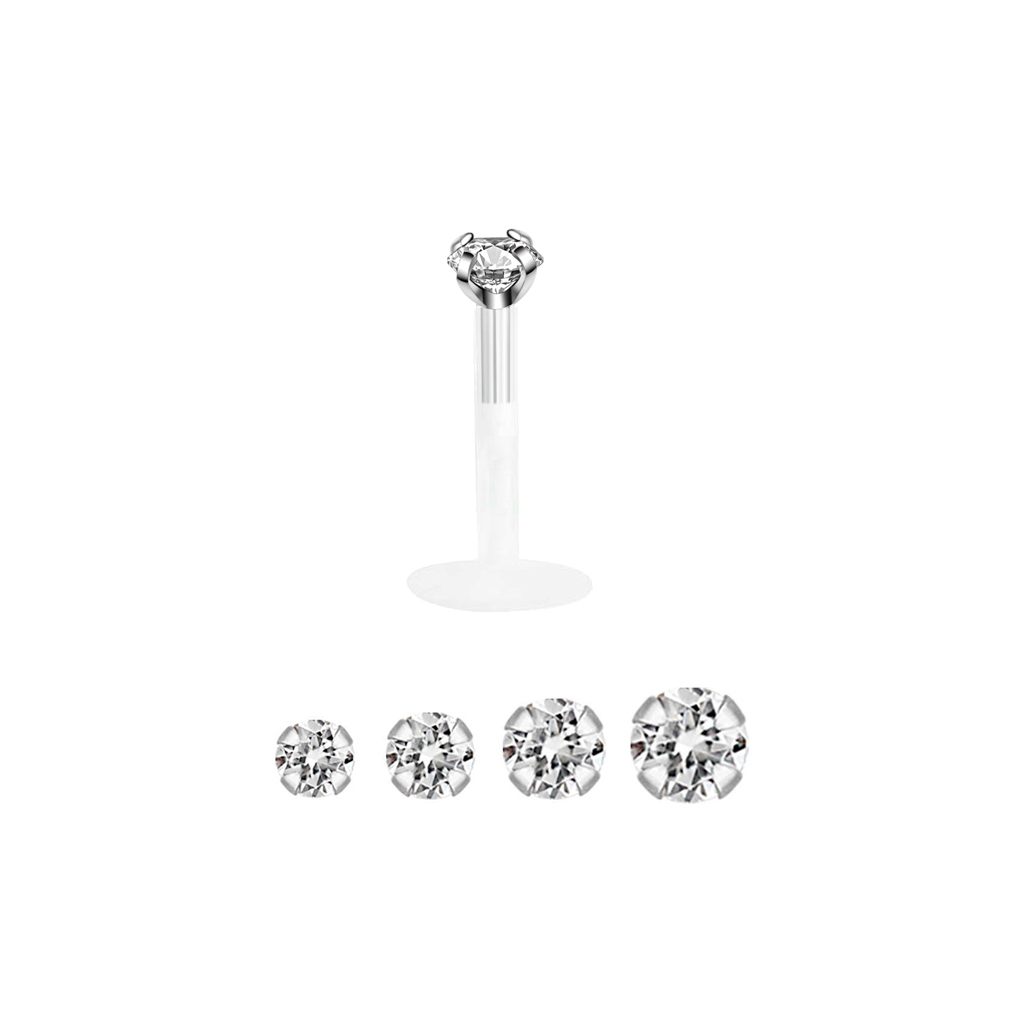 Name: Labret aus 14 Karat Gold mit rundem Stein und PTFE Stab