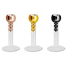 Der Schmuck ist in verschiedenen Längen und Farben erhältlich. Du kannst selbt die gewünschte Kombination für dein Piercing wählen. Unabhängig von der Kombination die du wählst, ist die Oberseite des Schmucks mit einem klaren Stein ausgestattet. Der Stein wird in einer 2,5mm kleinen Kugel eingetaucht. Du wählst auch die Farbe der Kugel.