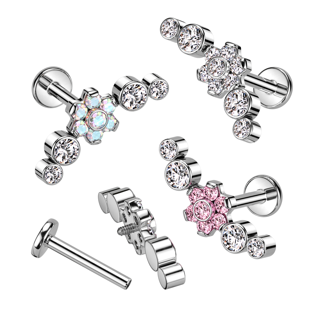 Name: Labret aus Titan mit wunderschönem Blumendesign