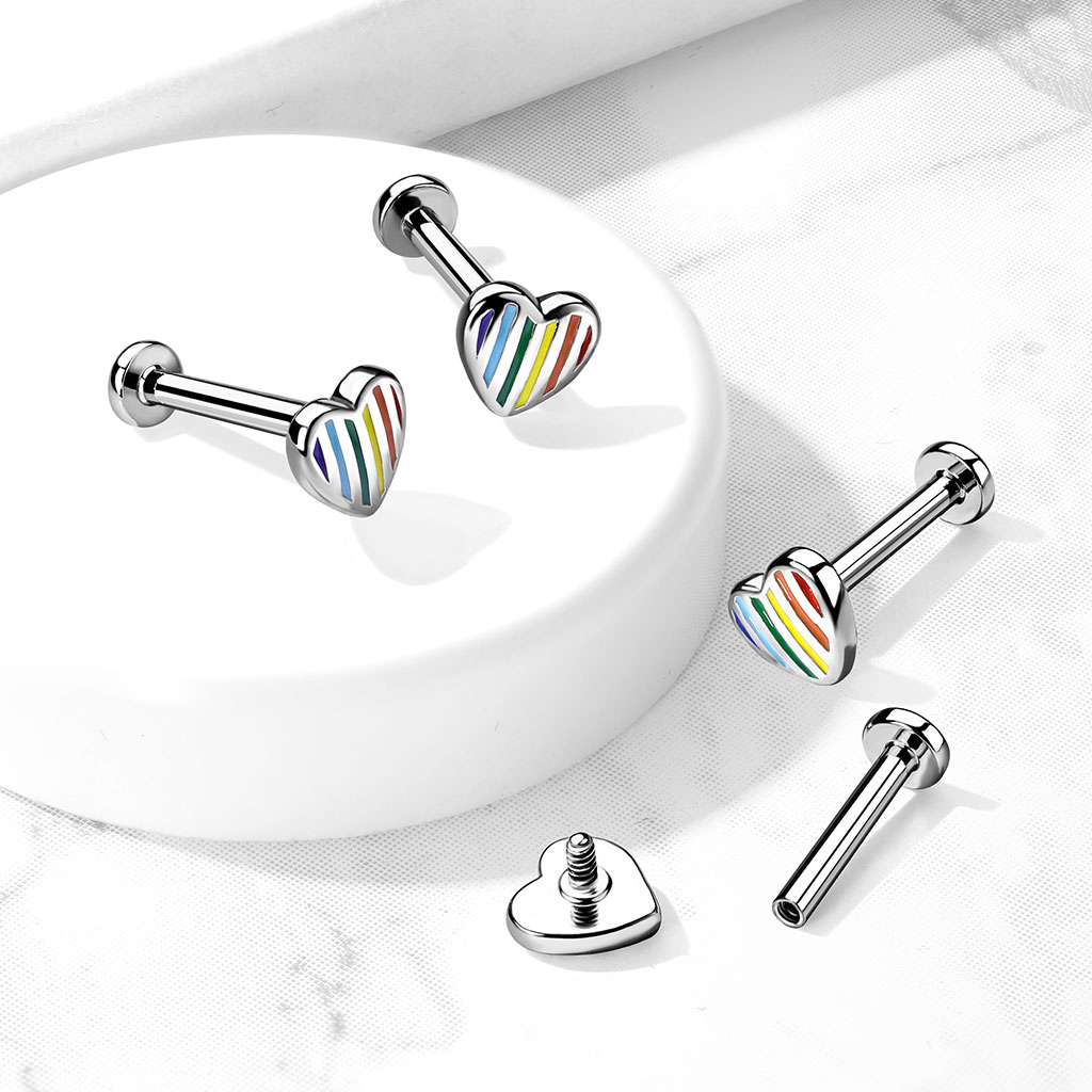 Labret mit Innengewinde und einem Regenbogen Herz