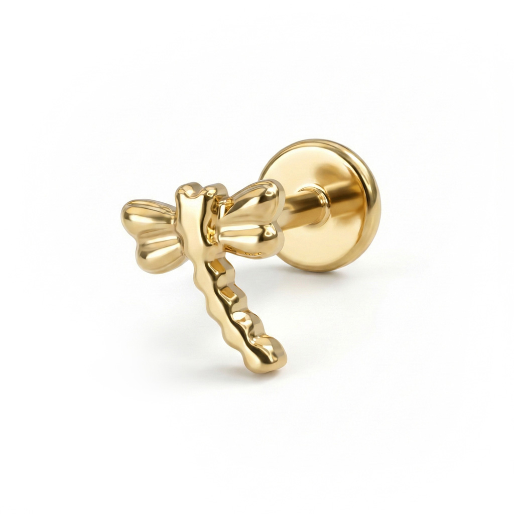Dieses hübsche Labret ist mit einer Libelle versehen. Es besteht aus Titan und ist daher auch für empfindliche Haut geeignet. Die delikate Größe (die Libelle hat eine zierliche Größe von 5,8 mm) bedeutet, dass dieses Stück für verschiedene Ohrpiercings geeignet ist. Das Labret verfügt über einen Push-in-Verschluss, mit dem es sich ganz einfach in deinem Piercing befestigen lässt.