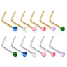 Dieses Modell ist eine Art Mischung aus einem normalen Nasenstecker und einer Nasenschraube. Die Nasenschraube hat einen gebogenen Abschluss, wogegen ein Nasenstecker gar keinen Abschluss hat. Dieses Modell hat einen 90 Grad Knick, so dass es weder eine Nasenschraube noch ein Nasenstecker ist. Deswegen nennen wir es einfach nur Nasenpiercing.